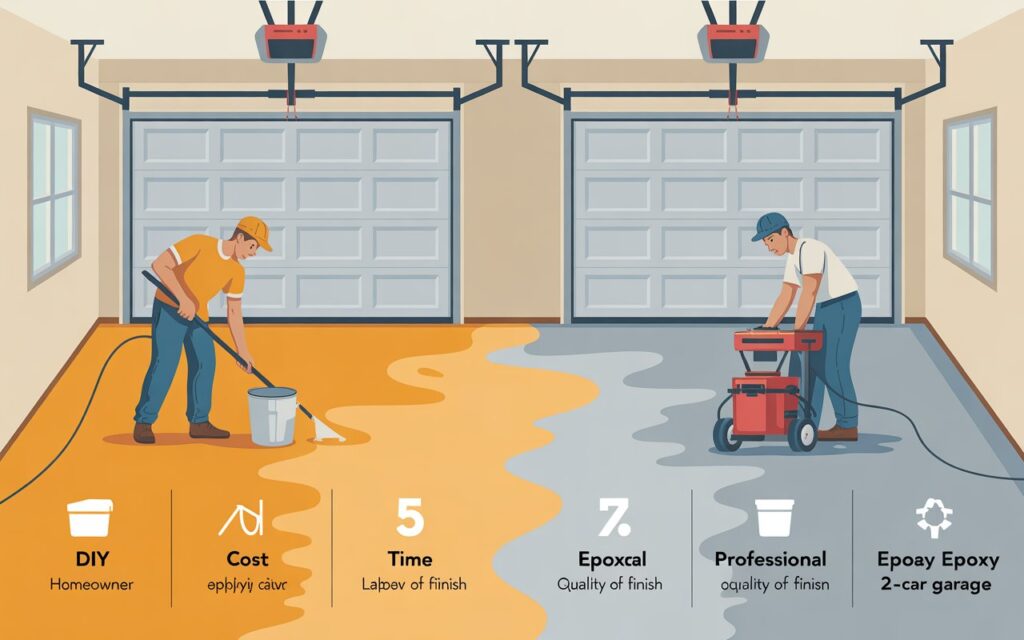 DIY epoxy is a good option if you have experience with concrete coatings and your garage floor is in good condition. However, for heavily damaged floors or decorative finishes, DIY may not provide professional-level results