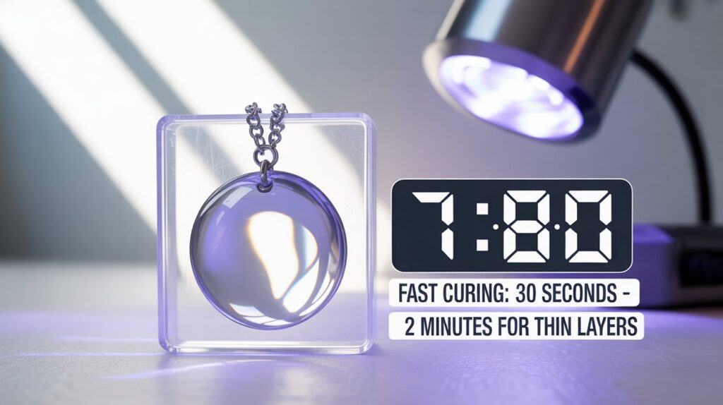 Under ideal conditions, UV resin cures very quickly compared to other resin types. When the correct setup is used, most projects can be hardened within minutes rather than hours. In a controlled environment using a high-quality UV lamp (36W–48W), a thin layer of clear resin typically hardens in 30 seconds to 2 minutes. This timing assumes the resin is spread evenly and placed close enough to the light source for proper exposure. For slightly thicker layers, curing usually takes 2 to 4 minutes. In these cases, it’s best to cure in short intervals, allowing the light to reach deeper into the resin without trapping uncured material underneath.