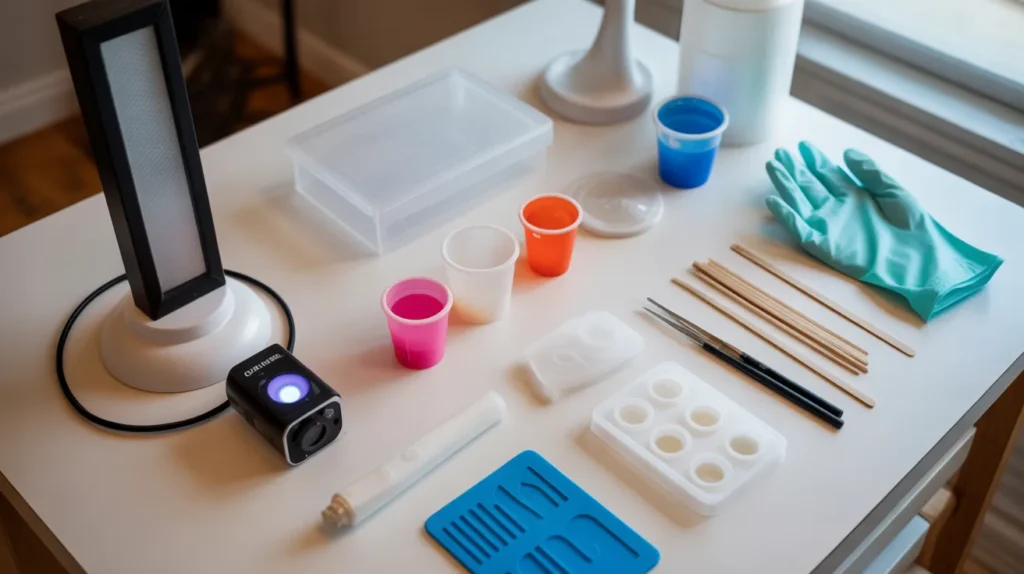 To cure UV resin properly, you need a few basic tools. These tools help ensure the resin hardens evenly and gives a smooth, professional finish.