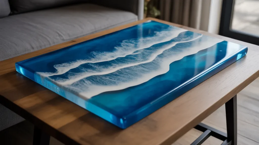Geode-style resin art is another creative option. This design mimics natural crystals by combining metallic pigments and sharp color contrasts. It is commonly used for tabletops, decorative trays, and artistic panels. If you prefer functional art, resin can be used on wooden furniture. Resin-coated tables and countertops have a glossy, durable finish that protects the surface while adding a decorative touch. This makes furniture both stylish and long-lasting.