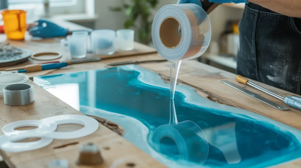 Double-sided tape can stick objects together but isn’t designed to handle wet resin or heavy pours. It may fail, leaving sticky residue or ruining the surface of your project.