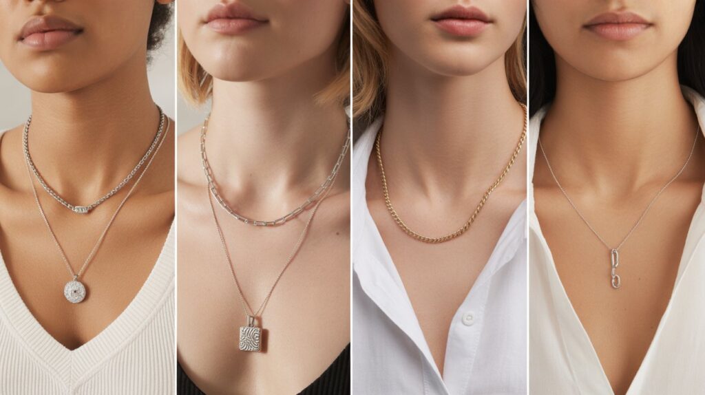 Budget-friendly options typically include stainless steel or plated necklaces. These pieces look stylish and are perfect for casual use, though their finish may fade over time. Mid-range necklaces made from sterling silver or gold-filled materials offer better durability and long-lasting shine without being too expensive. On the luxury end, solid gold or gemstone pendant necklaces provide the highest quality and craftsmanship, making them ideal for gifting or long-term wear.